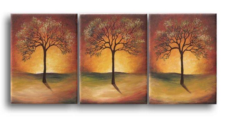 In the painting we see three trees, each proudly displayed on separate canvases that together form a cohesive triptych. The colors are warm and earthy, dominated by shades of brown, orange, and gold, which lends the painting the magical aura of a setting sun. The trees’ shadows stretch subtly across the ground, adding remarkable depth to the whole. The composition is uncomplicated yet thoughtful—the trees, though similarly shaped, each seem to tell a different story. The mood emanating from the work is calm, almost meditative. The absence of people amplifies the sense of silence and tranquility, as if we had found ourselves in a place outside of time. The artist’s style is clearly impressionistic; the painter uses soft, intermingling brushstrokes that recall a gentle breeze stirring the tree canopies. Seeing these paintings, you can feel warmth inside. I then think of vacations in the countryside, where time moves more slowly. The painting may evoke nostalgia for simplicity and natural beauty. It evokes a feeling of “serenity” that makes you want to gaze at it endlessly. Someone might say, “These are magic trees!” because they look as if they might start speaking at any moment. The impressions this painting leaves are above all silence and peace—and perhaps even a desire to plant a tree yourself and watch it grow.
