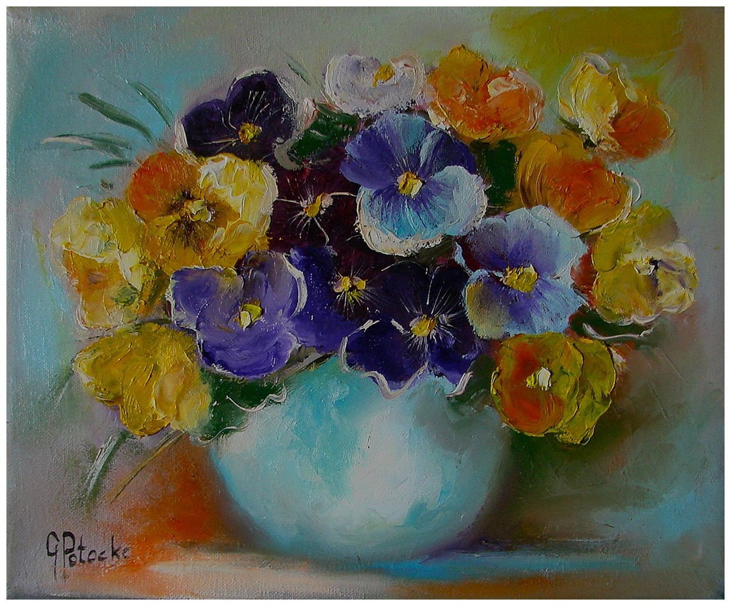 Grażyna Potocka - Colorful pansies oil painting 25-30cm