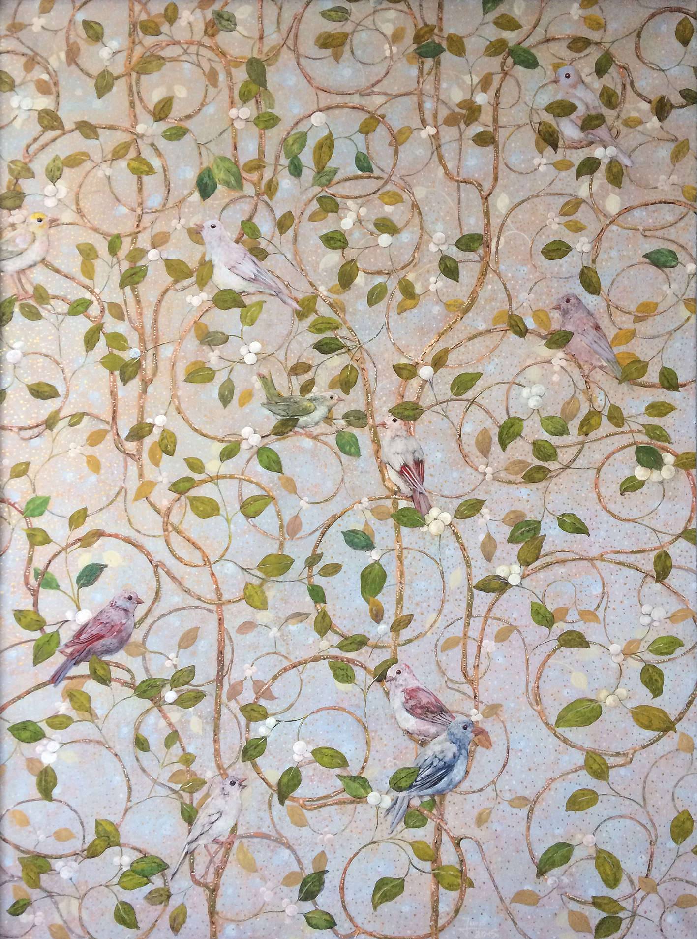 Jerzy Plucha - "Paradise Gardens - Birds of Pearl Shrubs II"