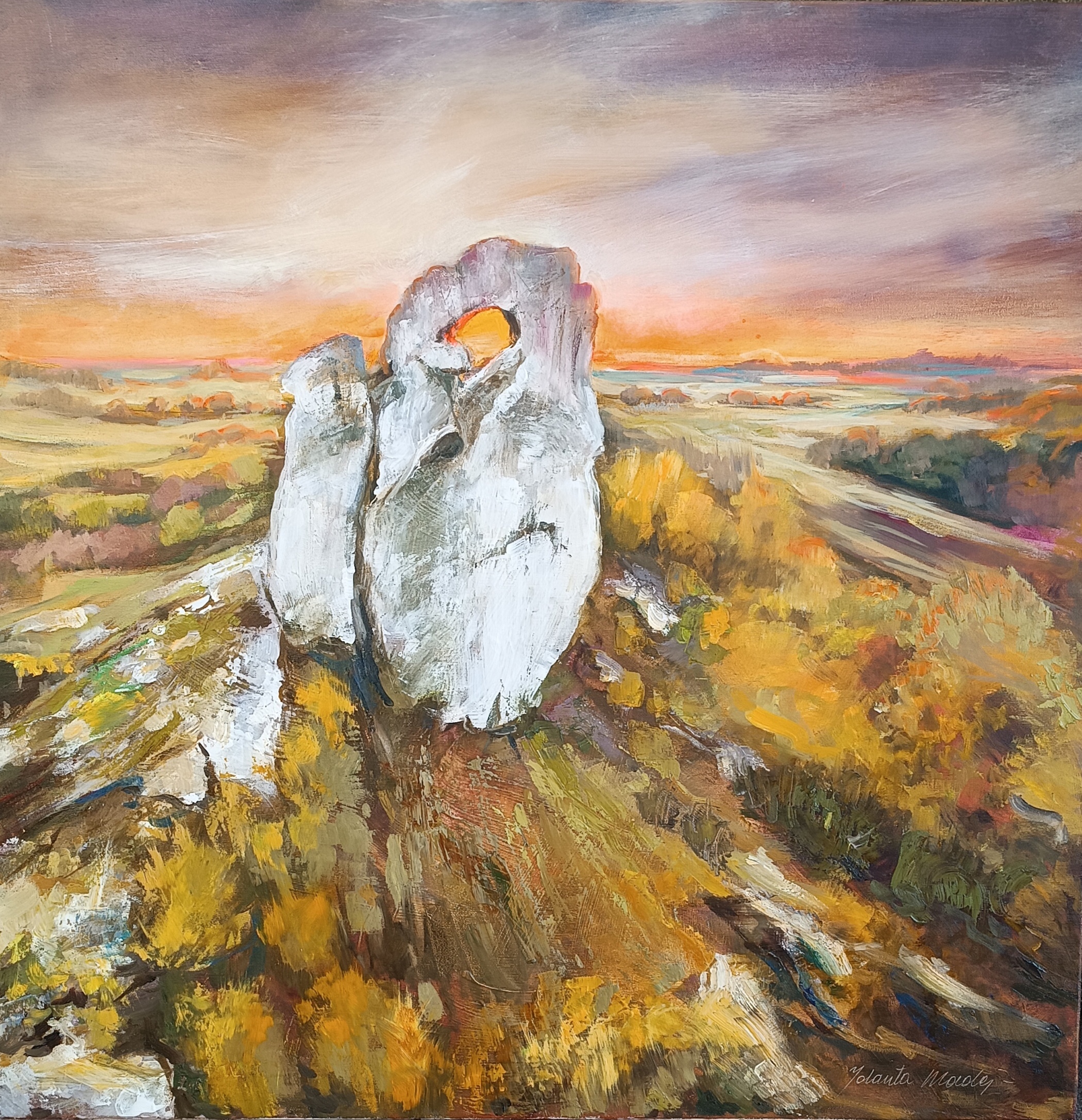 The painting depicts a distinctive rock known as "Okiennik," rising majestically above the Jurassic landscape. Its natural beauty draws the eye and creates a unique frame for the distant landscape. It's an invitation to a world of silence and beauty. The perfect choice for those who want to bring a unique atmosphere and a touch of Jurassic magic to their home.