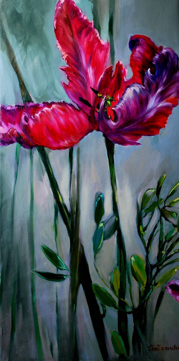 "Purple tulip on gray"
