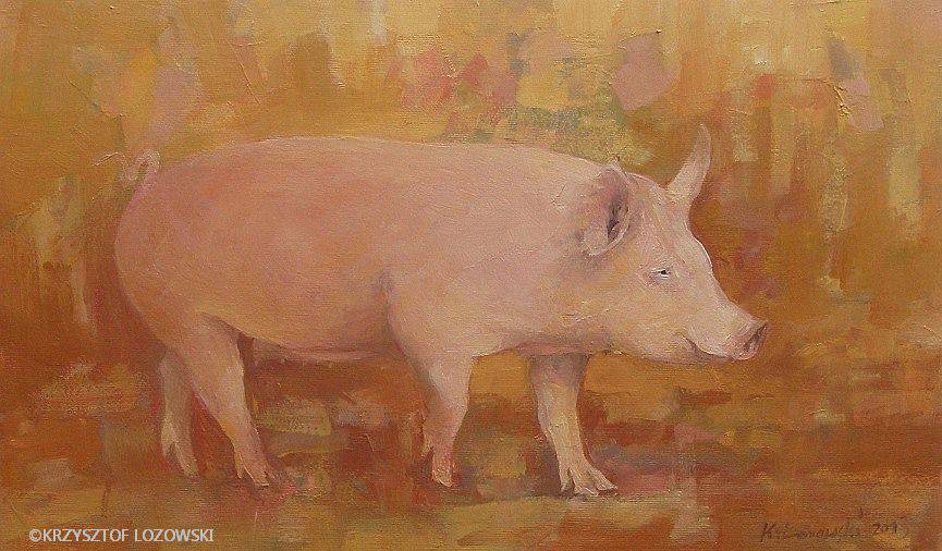 The painting depicts a friendly pig against an abstract, warm landscape. Shades of gold, brown, and pale pink dominate, creating a harmonious and cozy composition. The pig appears immersed in the soft light of sunset, which lends the work a touch of nostalgia and calm. The artist used delicate brushstrokes, making the painting’s texture smooth yet full of subtle details. The technique reveals influences of Impressionism, with an emphasis on atmosphere and emotional expression. When you look at this painting, you feel warmth in your heart and perhaps even a touch of amusement. Like a child who would say, “The pig looks like it’s smiling!” The charm of simplicity and innocence reminds us of the joy that comes from little moments. This is art—simple yet full of depth. The painting may inspire reflection on the tranquility of nature and remind us how important it is to appreciate everyday little things. For some, the pig may symbolize freedom and innocence; for others, it will simply be a pleasant sight over afternoon tea.