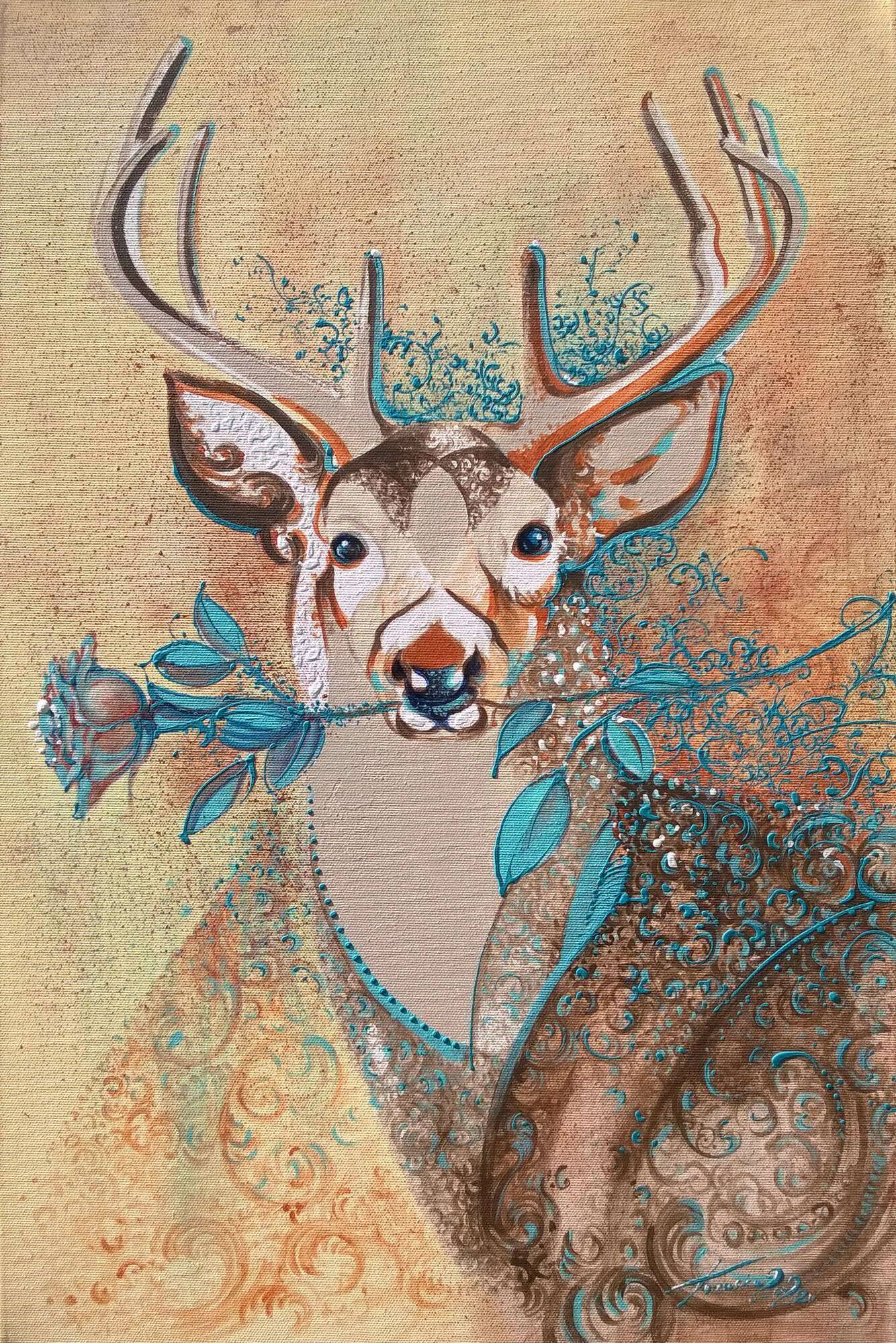 Krzysztof Trzaska, Blue Rose painting, acrylic/canvas, 60x40