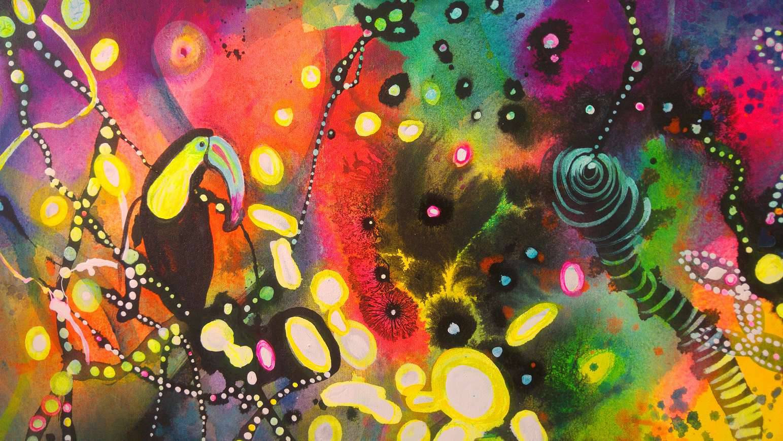 Abstraction with flamingo and toucan No. II