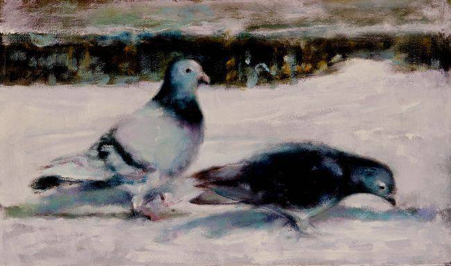 This painting depicts two pigeons against a snowy background. The bright whites of the snow contrast with the darker tones of the birds’ plumage, creating harmony and serenity. The composition is simple, focused on these two figures. The artist uses delicate brushstrokes to convey the softness of the snow. The mood of the painting is calm, almost meditative. It brings to mind a quiet winter morning, when everything is covered with fresh powder. It’s so warm and pleasant, isn’t it? The Impressionist technique makes the painting dynamic despite its static subject. You can feel the chill of winter, but also the warmth that comes from observing nature. These pigeons are like characters from a children’s “storybook.” You can tell the artist can capture a moment that would normally go unnoticed. You can almost feel the gentle wind scattering the powdery snow on the ground. The painting can awaken in us a nostalgia for moments of calm and natural beauty. Isn’t it beautiful how art can transport us to another place? Each of us sees something different, and that is what’s truly magical. I hope that, looking at this painting, we find within ourselves the same joy and simplicity as in childhood.