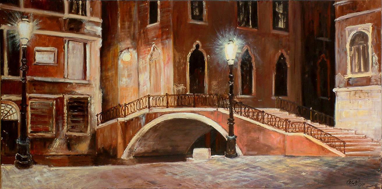 Urszula Nieborak - The bridge from the cycle of Venice at night