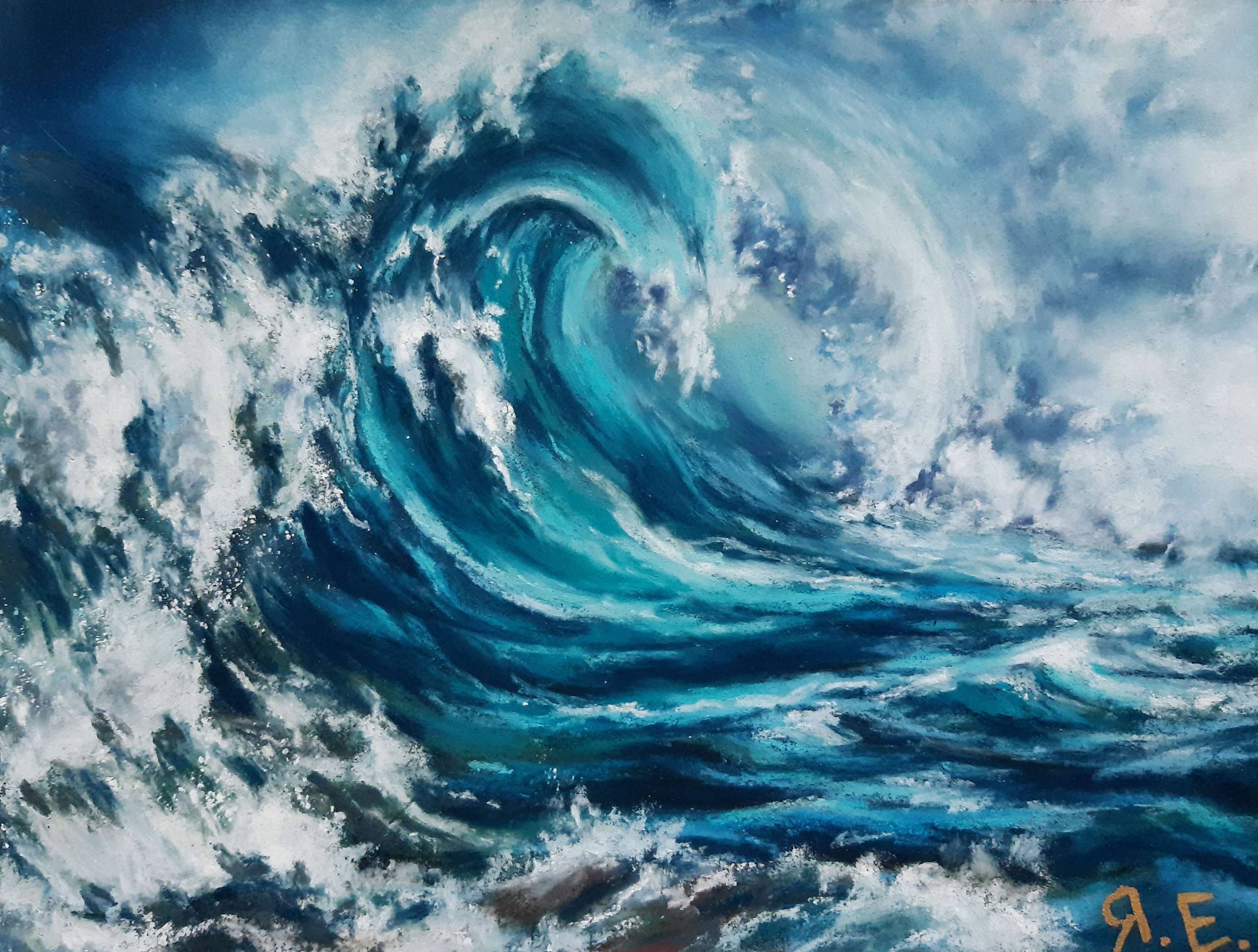 Yana Yeremenko - "WAVE" / "STORM-2" seascape pasteldrawing