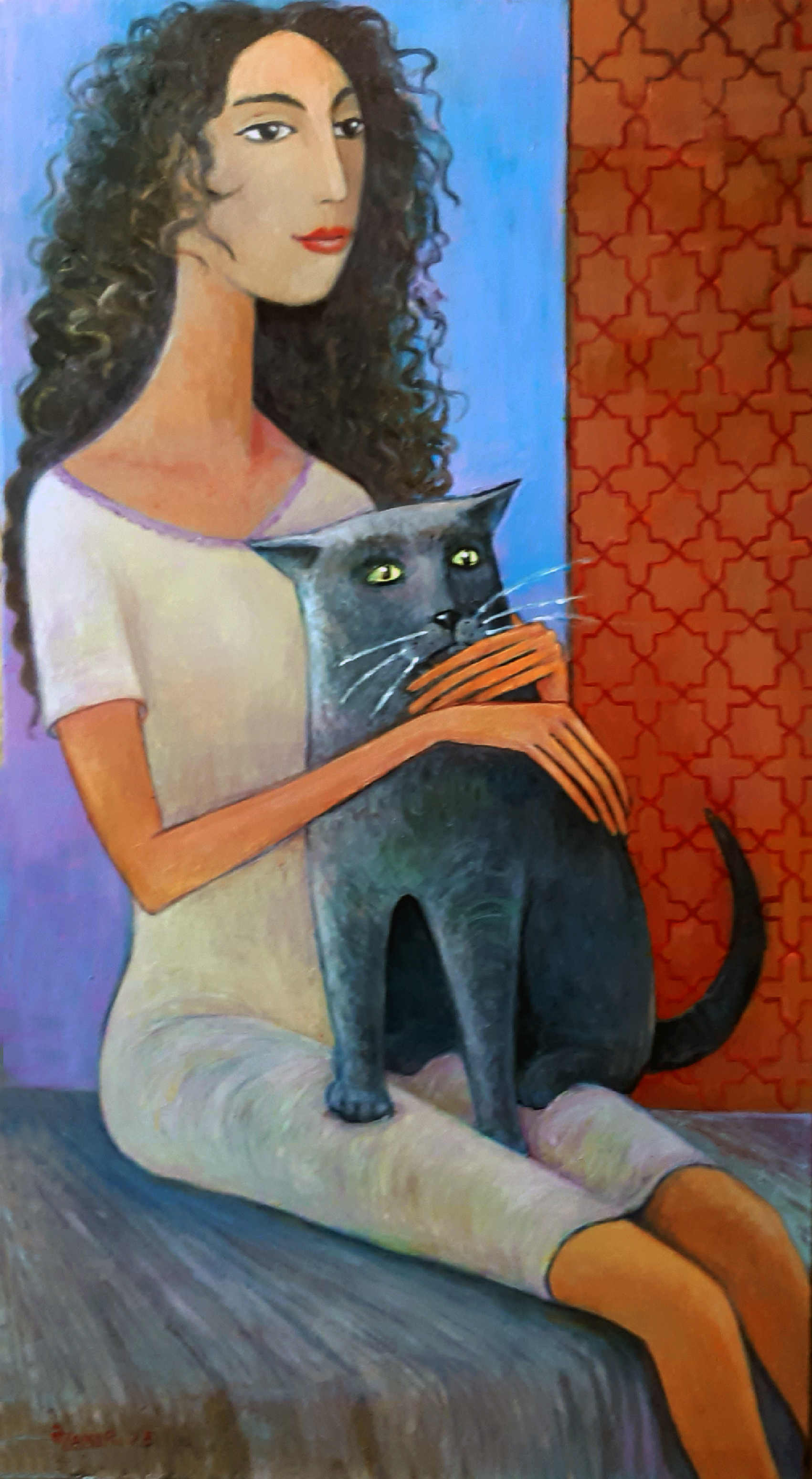 ZAKIR AHMEDOV - Girl with a cat 2025year 90X50cm Original painting Oil on canvas