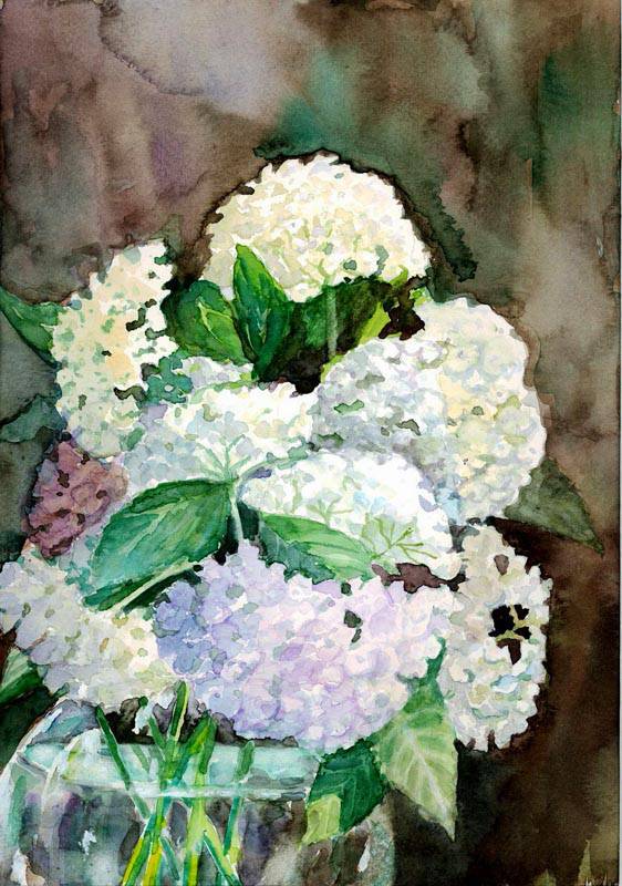 Hydrangeas in jug