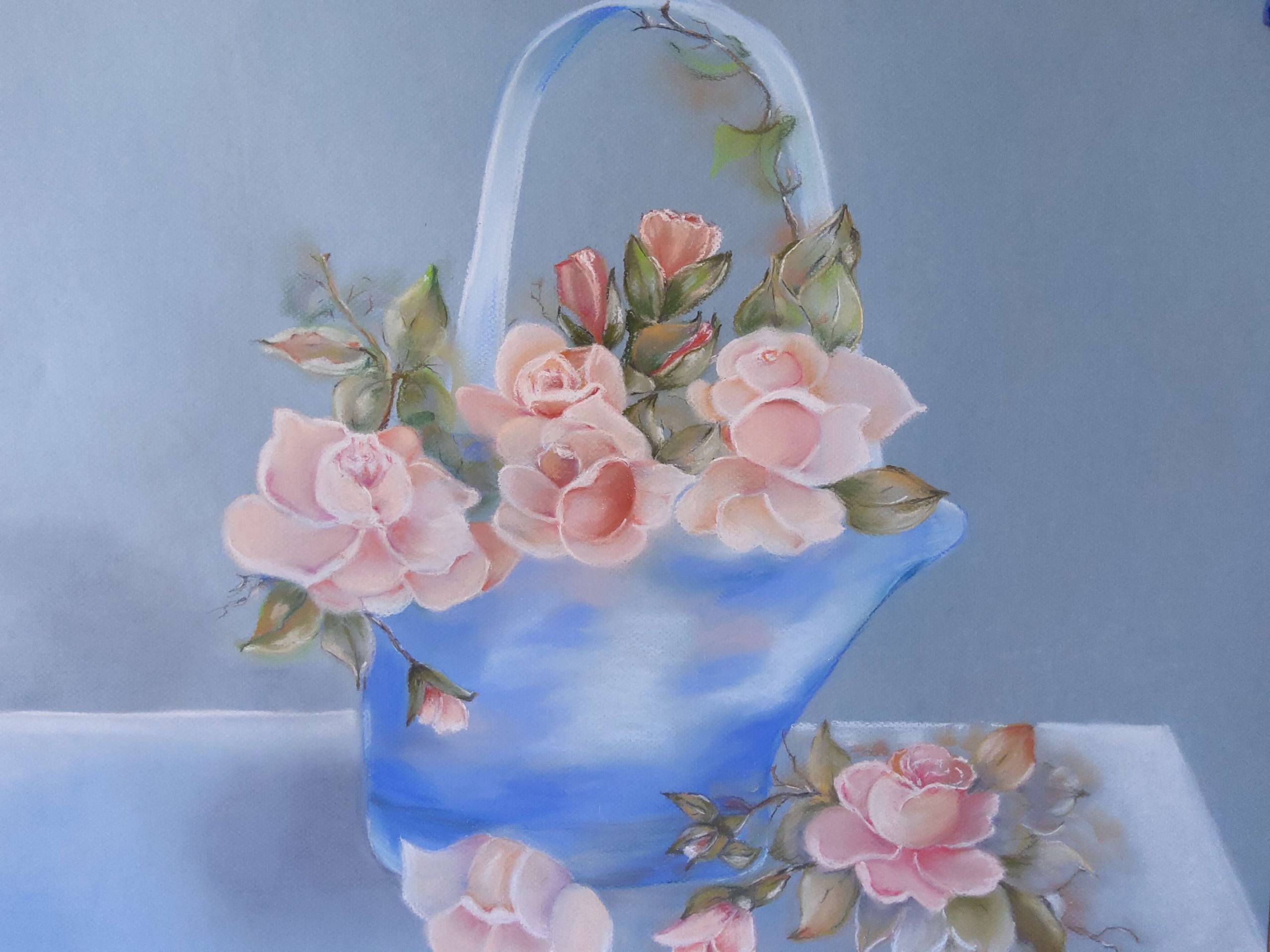 Roses in a blue basket