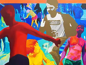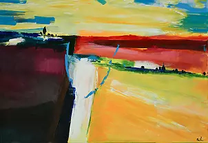 Krzysztof Trzaska painting Pisces from the Zodiac Signs series, acrylic/canvas, 60x80 in an 80x100 display frame