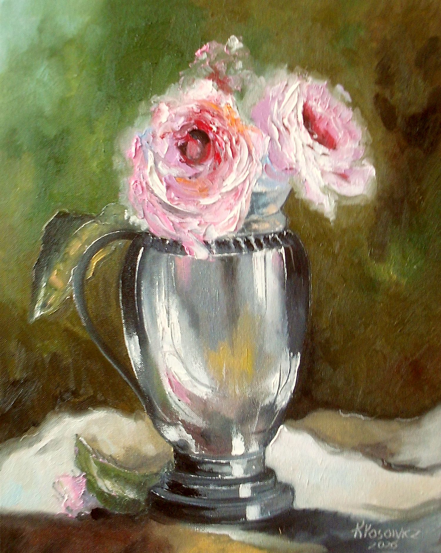 "Des roses dans une coupe d'argent"