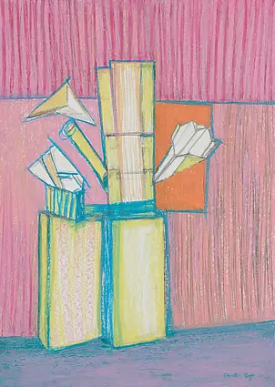 Nature morte interagissant de manière vivante avec un papier peint coloré 2