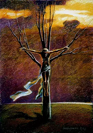 Zachęcamy do zainteresowania się tą kategorią obrazów. Sztuka sakralna jest obecna w historii sztuki niemal od początków chrześcijaństwa. Przez setki lat artyści na całym świecie inspirowali się wydarzeniami biblijnymi, tworząc obrazy zgodne ze swoimi wyobrażeniami postaci takich, jak: Jezus Chrystus, Matka Boska (często przedstawiana z Dzieciątkiem Jezus), święci i apostołowie. Szczególnie w średniowieczu i baroku sztuka sakralna odgrywała niebagatelną rolę w życiu kulturalnym ówczesnego społeczeństwa. Sakralne obrazy są tworzone także współcześnie. Ze swoimi odpowiednikami sprzed kilku wieków łączy je tematyka, natomiast to, co je wyróżnia to styl, kompozycja i kolorystyka, która jest już o wiele bardziej zróżnicowana. Dzieła o tematyce sakralnej po dziś dzień cieszą się sporym zainteresowaniem, nie tylko ze z powodu popularności i powszechności motywów biblijnych, ale również ze względu na duchowe potrzeby wielu odbiorców, którzy poprzez kontakt ze sztuka pragną być bliżej Boga. Warto dodać, że sztuka sakralna nie ogranicza się wyłącznie do przedstawiania postaci ludzkich i boskich, ale obejmuje też malarstwo krajobrazowe. Szczególne miejsce w tej kategorii tematycznej mają więc dzieła, na których kompozycję składają się malownicze kościoły i kapliczki. Obrazy o tematyce sakralnej są u nas dostępne na sprzedaż. Zapraszamy do przeglądania naszej internetowej galerii zdjęć i wyboru jak najlepszego dzieła dla siebie, w najbardziej cenionym przez Państwa stylu.
