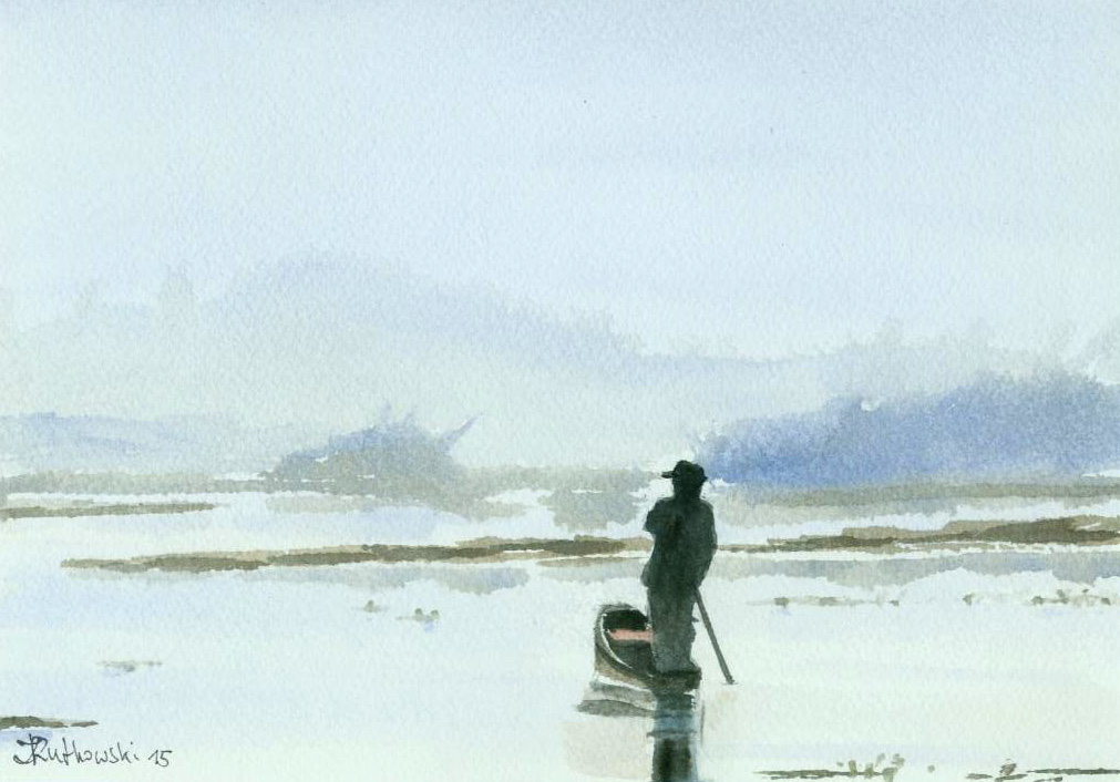 Un pescatore nella pianura alluvionale della Biebrza