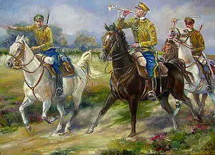 Cavalcata, dipinto acrilico su tela 50x50x2 cm.