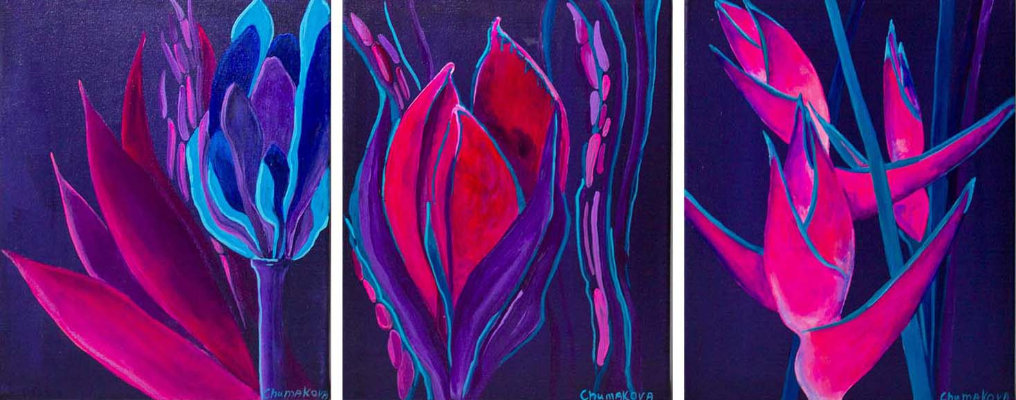 Картина триптих "Цветы"