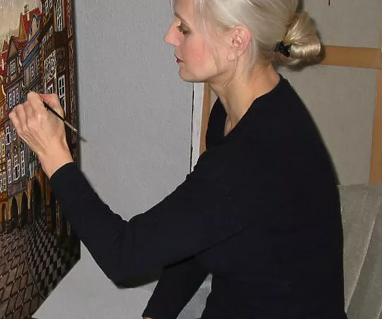 Her works inoil is slowly and carefully painted,she has very detailed style.